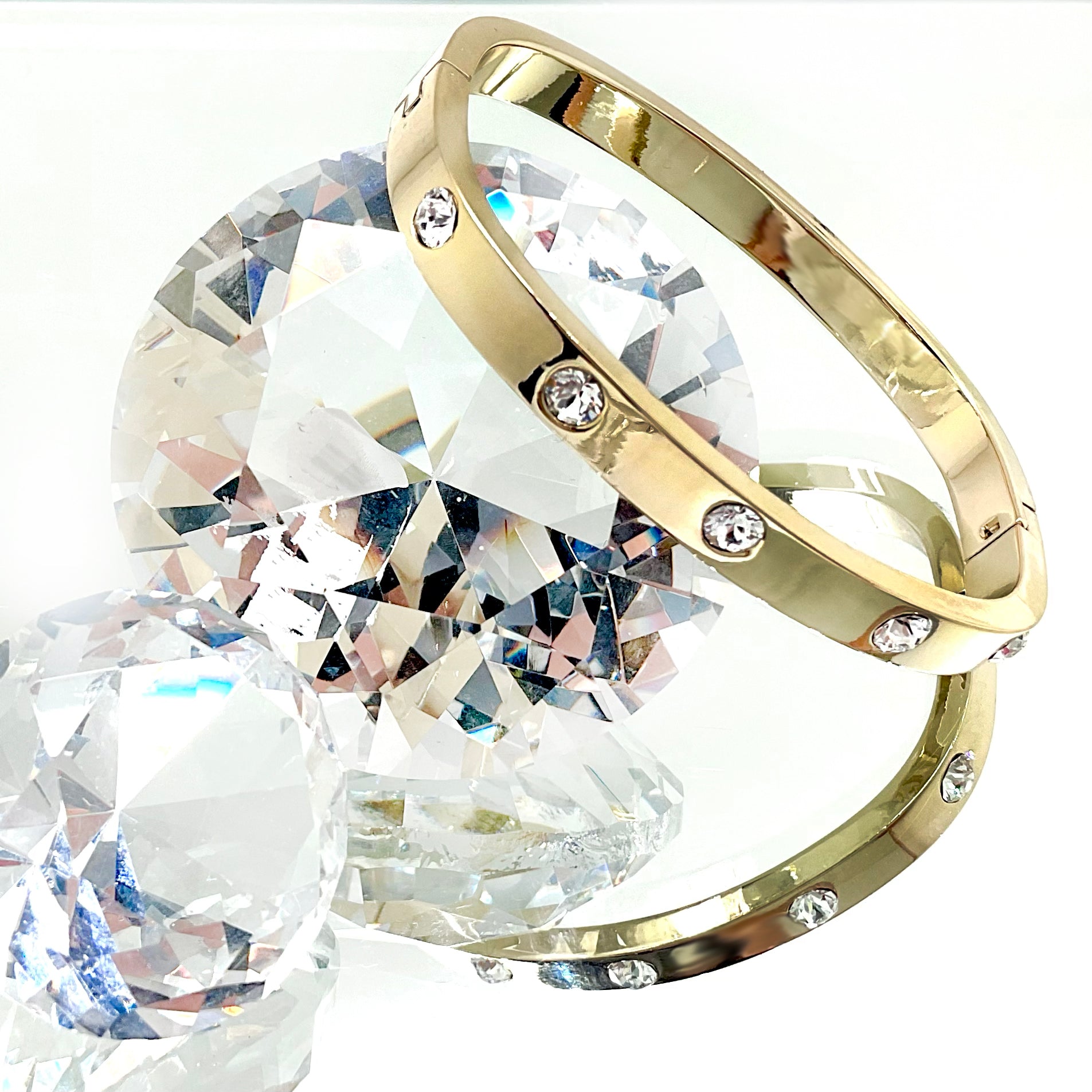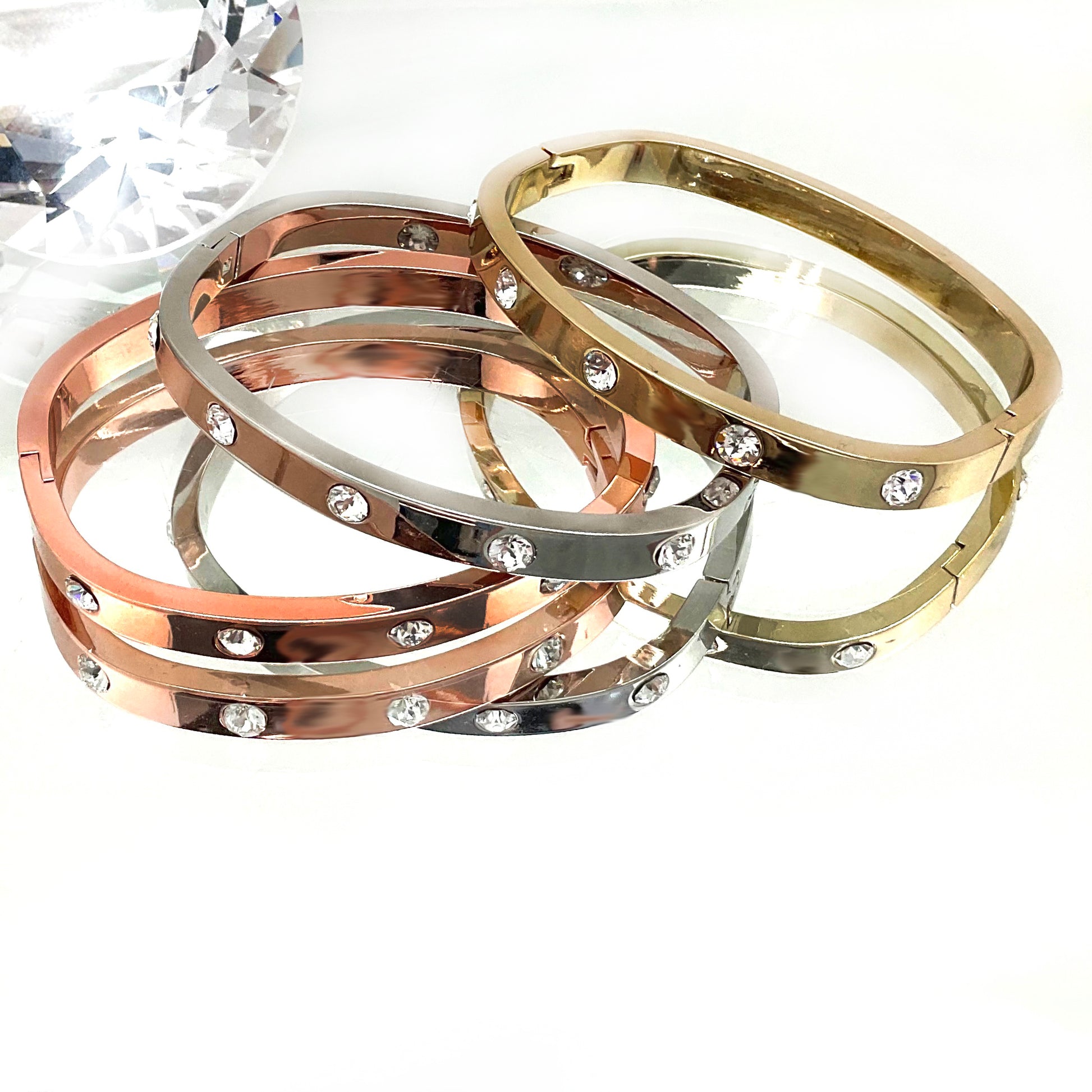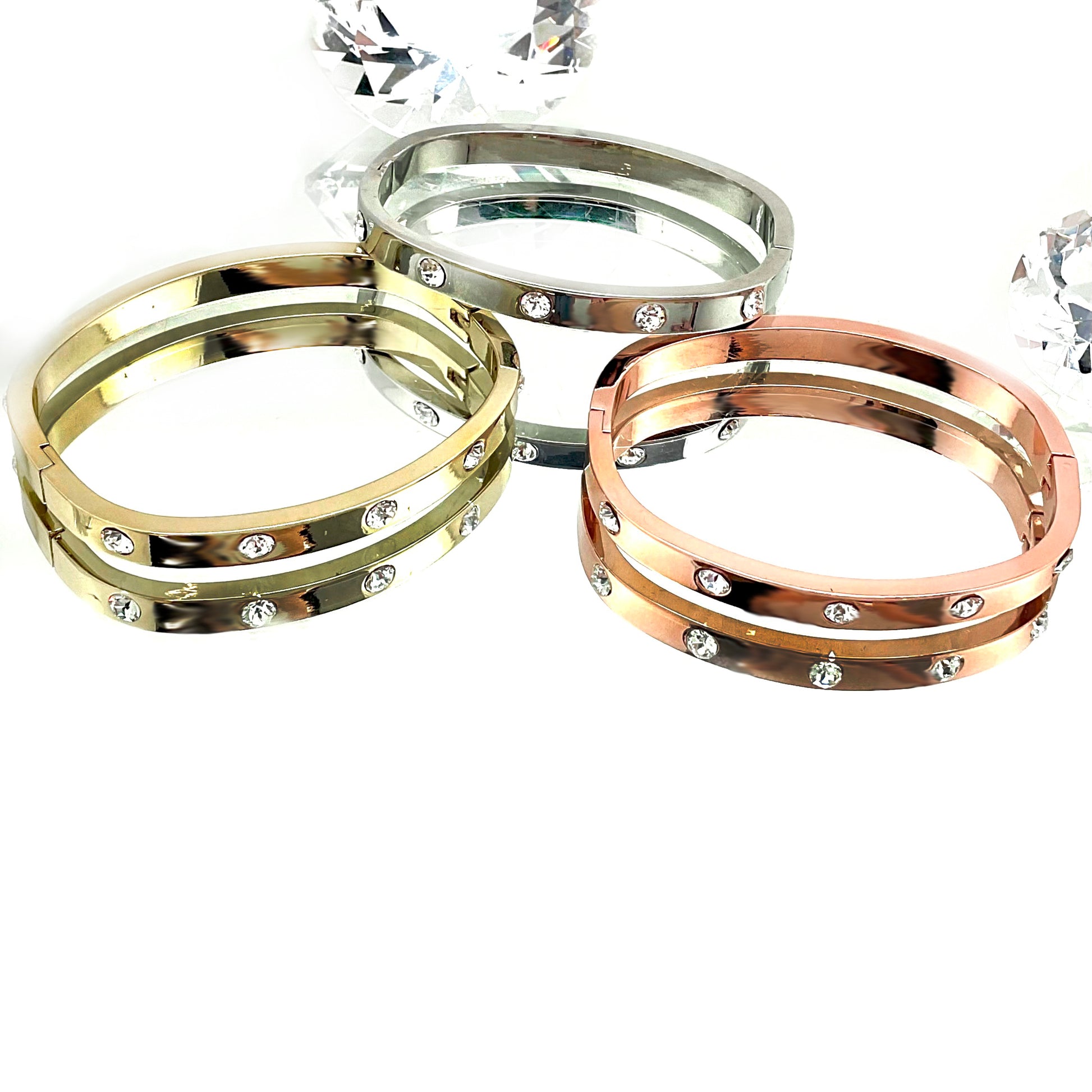 Crystals set throughout the entire bangle.